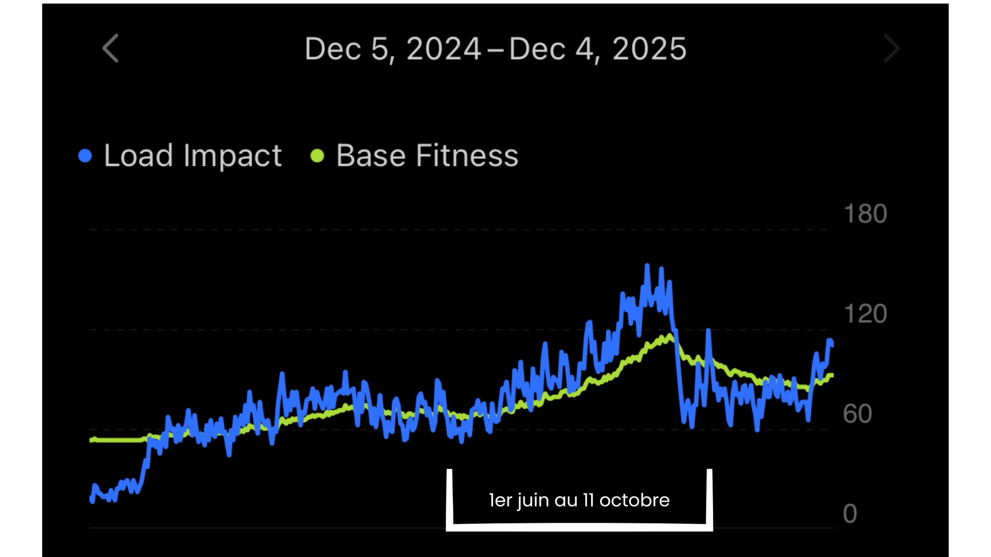 - Une progression nette de mon Base Fitness selon ma COROS.